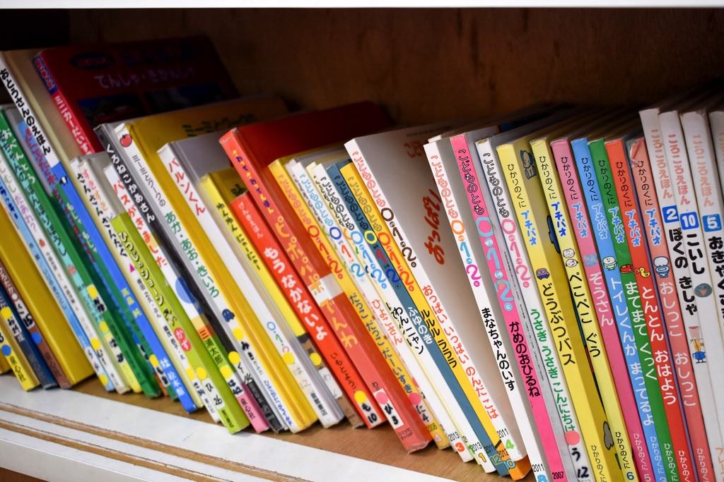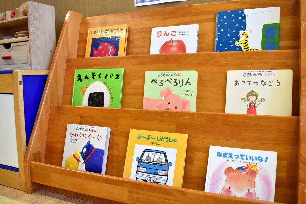 絵本は毎月石和図書館から貸し出される50冊の本と入れ替えているので、いつでも新しい絵本と出会うことができる。