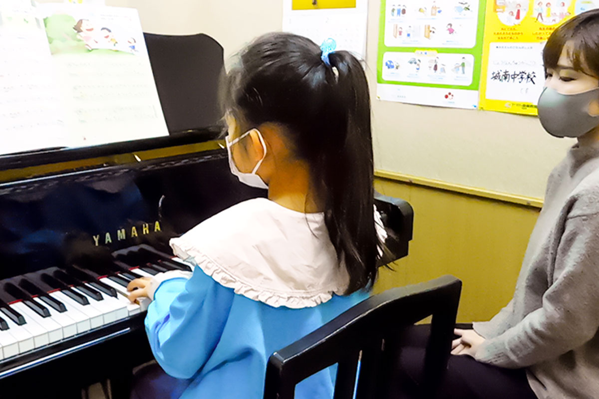 レッスンではヤマハの教材を使い、演奏技術やソルフェージュ力を中心に、無理なく楽しみながら音楽を身につけることができる。