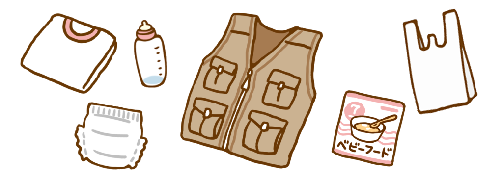 必要最低限のものをポケットに詰めたベストを玄関先に用意しておけば、いざという時にそれを身に着けたうえで子どもを抱っこすれば比較的逃げやすくなります。
