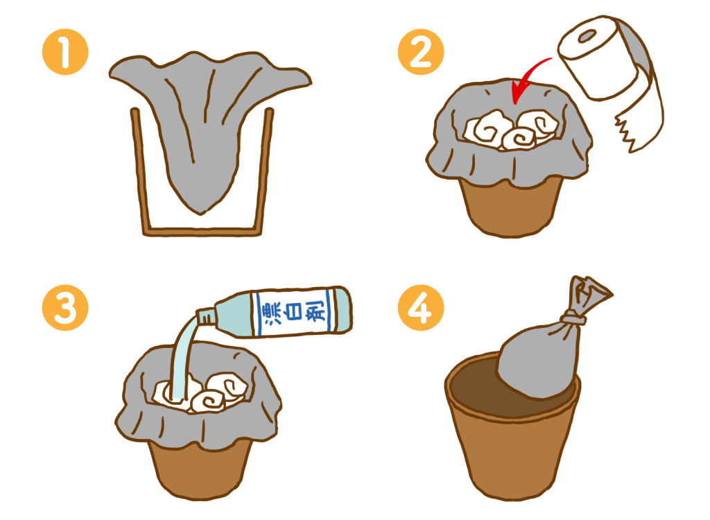 ゴミ箱・20ℓ黒ビニール袋・トイレットペーパー・塩素系漂白剤