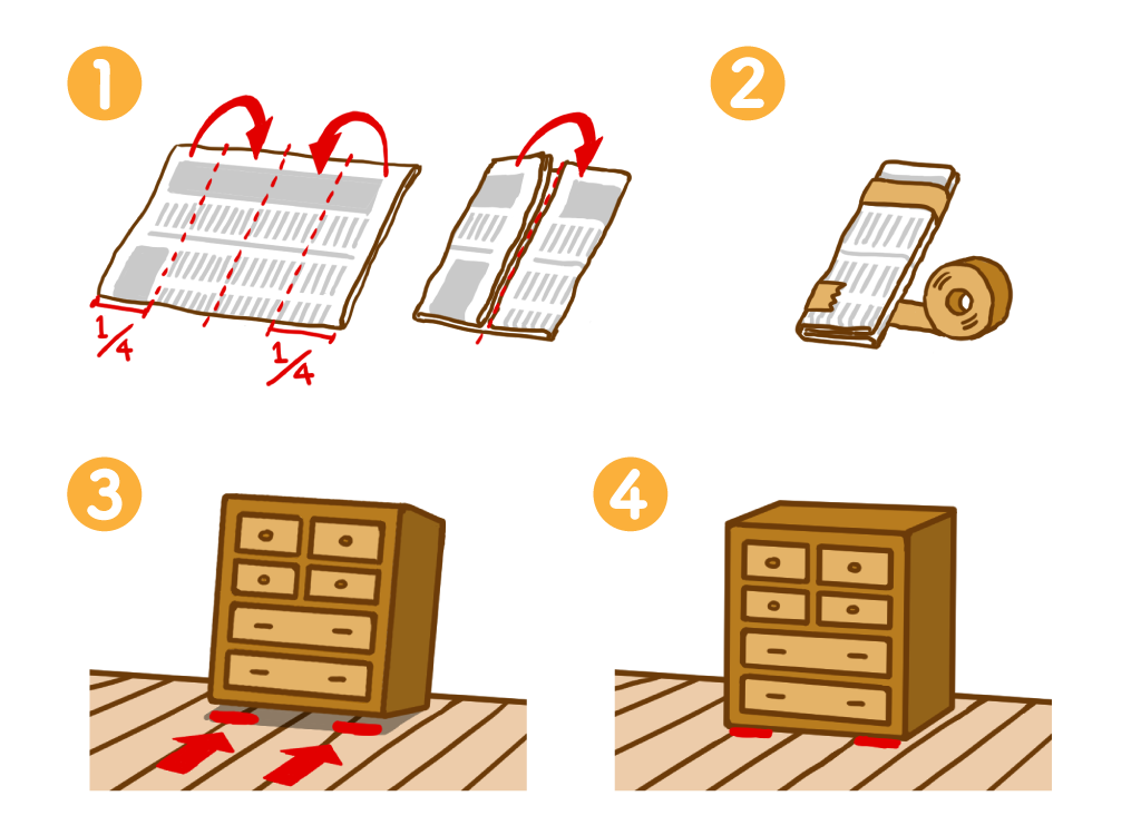 家具の転倒防止グッズは多くありますが、新聞紙で手軽に家具のストッパーを作ることもできます。