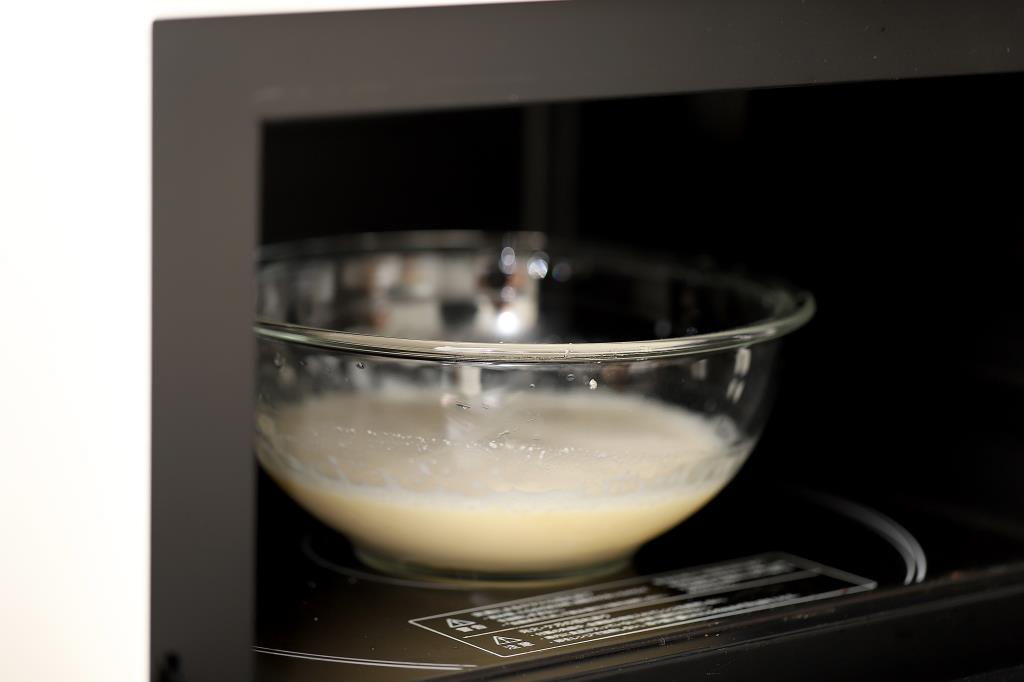 ② ①に牛乳を入れてしっかり混ぜ合わせ、500wで2分温めたらよく混ぜる。