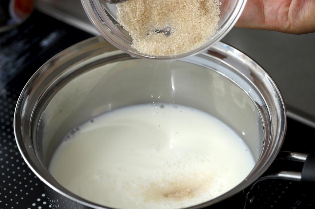 ① 鍋に牛乳、砂糖を入れ弱火で温める。