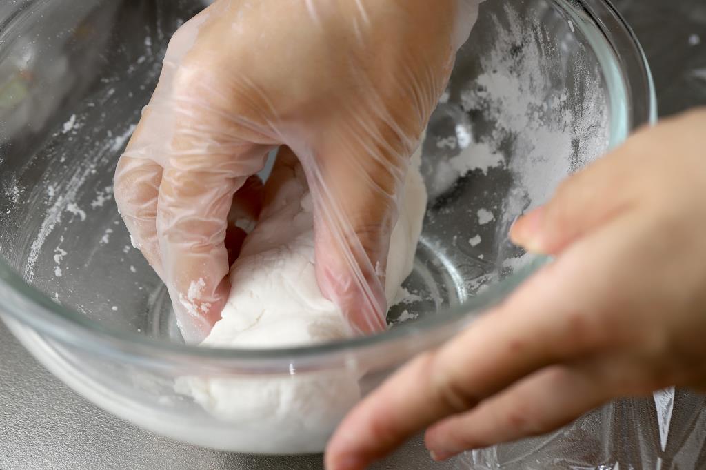 ② 耳たぶの柔らかさになるまで混ぜ合わせ、5等分にして丸める(3cm位の大きさ)。