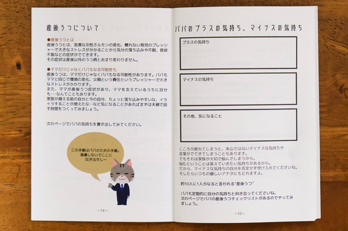 手帳作成にあたり一番大切にしたのは、自身の産後うつの経験や出産後に感じた不安、孤独感などから、お互いの思考や体調、心の変化がひと目で分かるようなページを掲載したかったこと。
