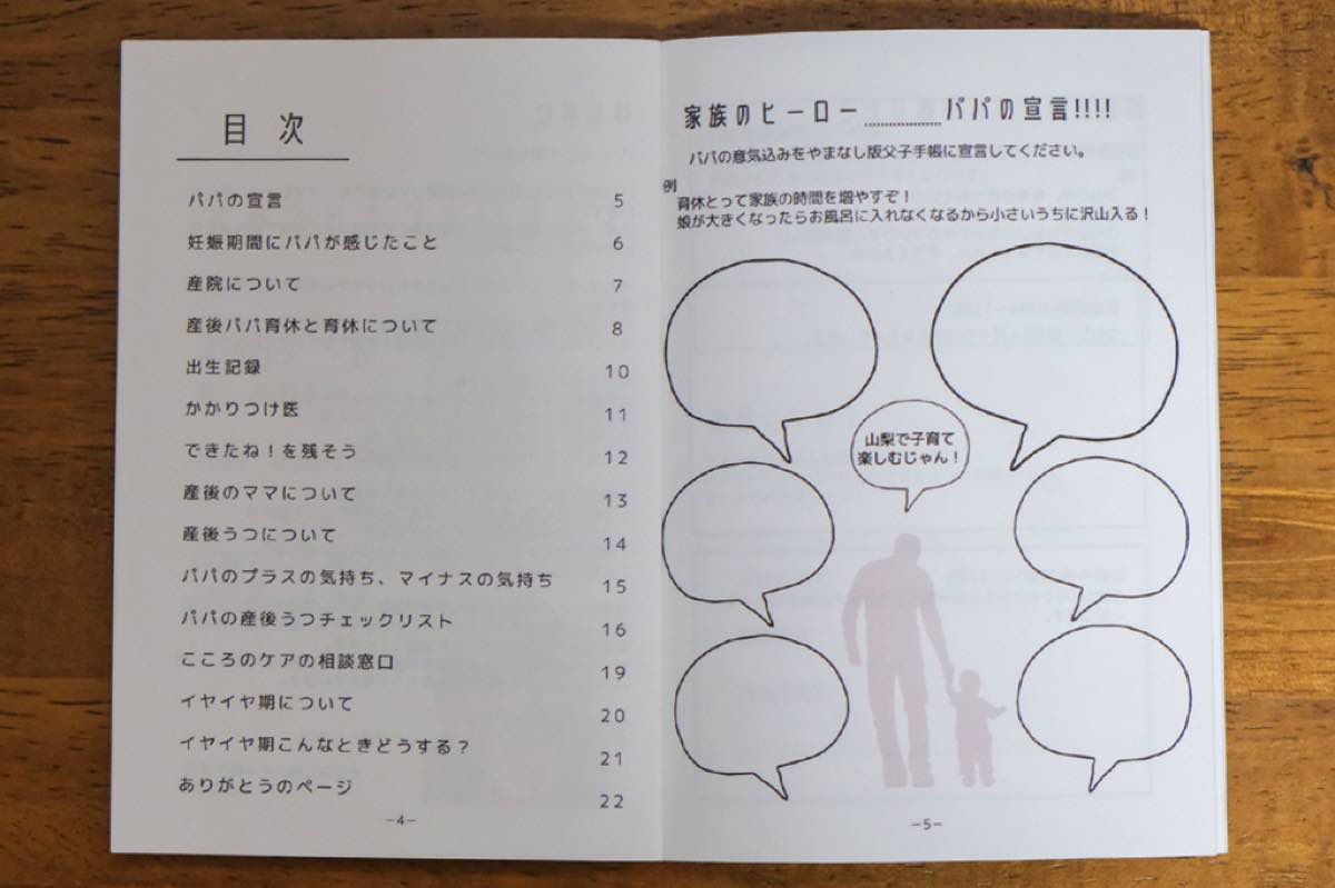 父子手帳は、中央市子育て支援センターをはじめ、地域の子育てイベントなどで配布する予定とか。夫婦で寄り添いながら、“笑顔で子育て”に繋がるツールとして役立てたい。