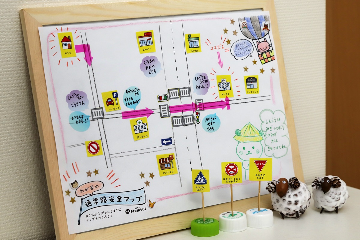 どこに注意をはらうべきか繰り返し子どもと一緒に安全確認し、マップにどんどん書き込んでオリジナルマップを作ってくださいね! また、ドライバーである私たち大人が、改めて本来の交通ルールを確認することもとても重要ですね。