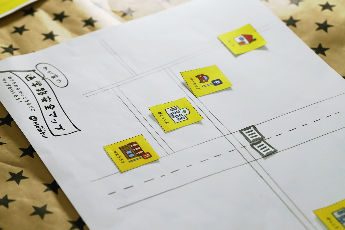 知らなかった標識や危ないところなどを確認しながら、Momfulオリジナル標識シートと台紙をダウンロードして、親子で通学路安全マップを手作りしちゃいましょう♪
