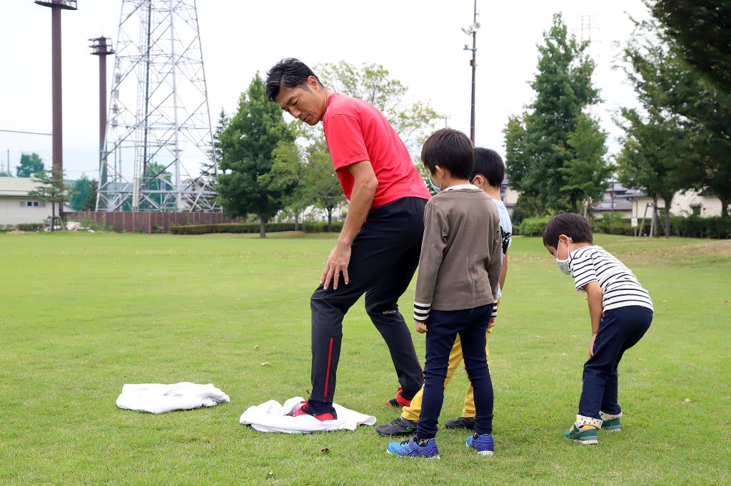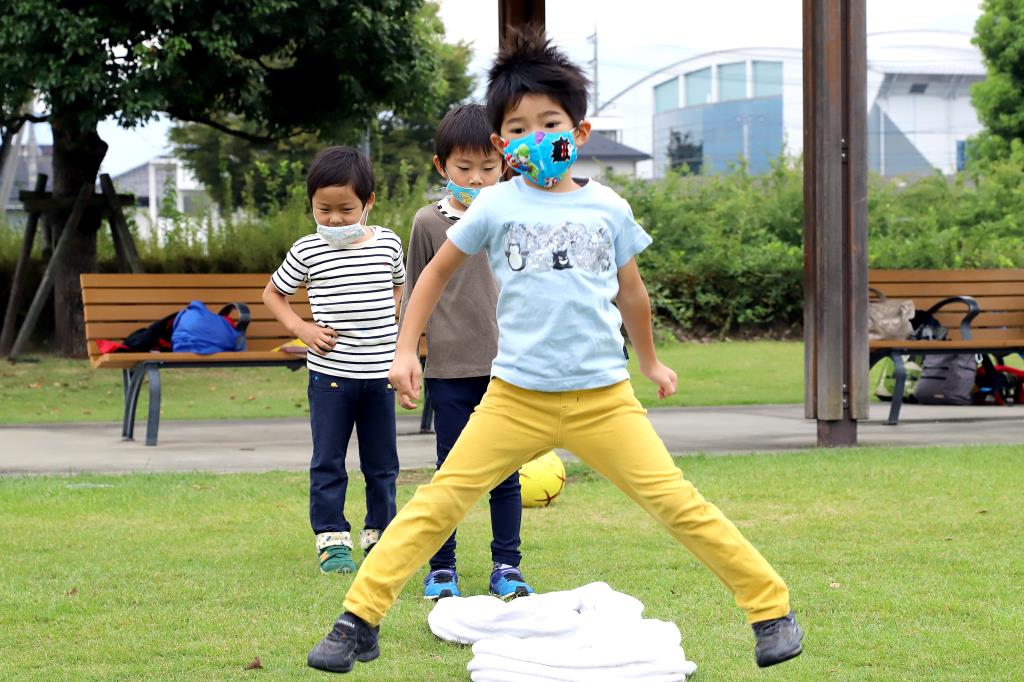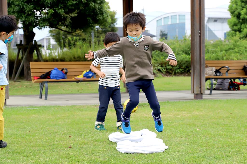 - ・片足で左右にケンケンしながらタオルをとびこえる。