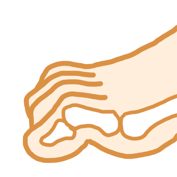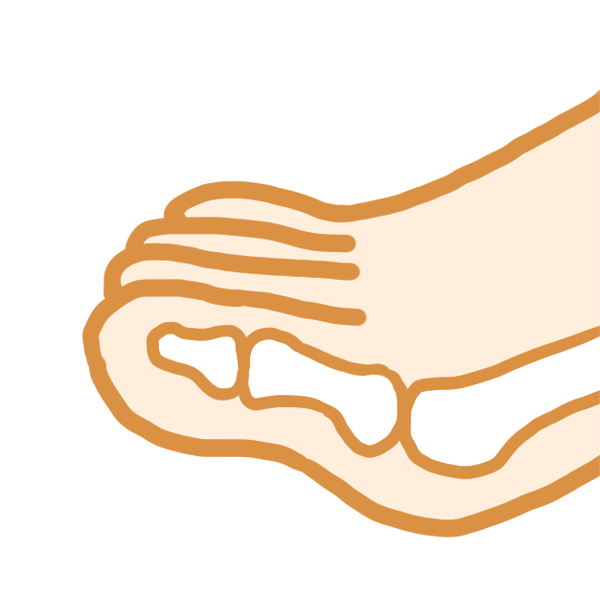 - 足指が曲がったまま硬くなり、放っておくと足指をのばせなくなる恐れもあり。