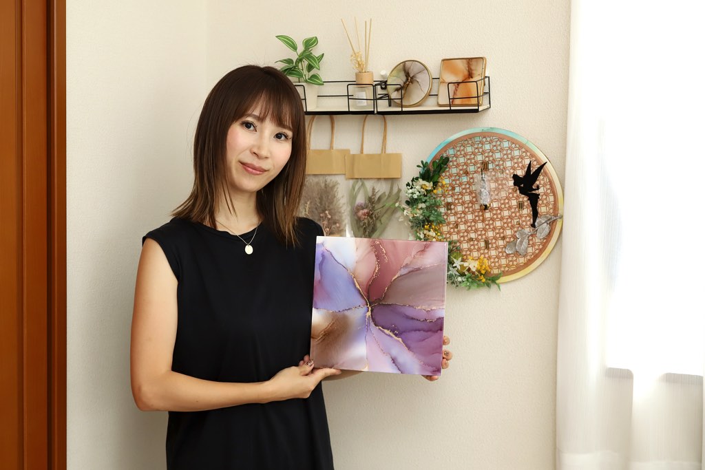 そのタイミングでアルコールインクアートと出合い、直感で「私、これやりたい!」と一念発起。