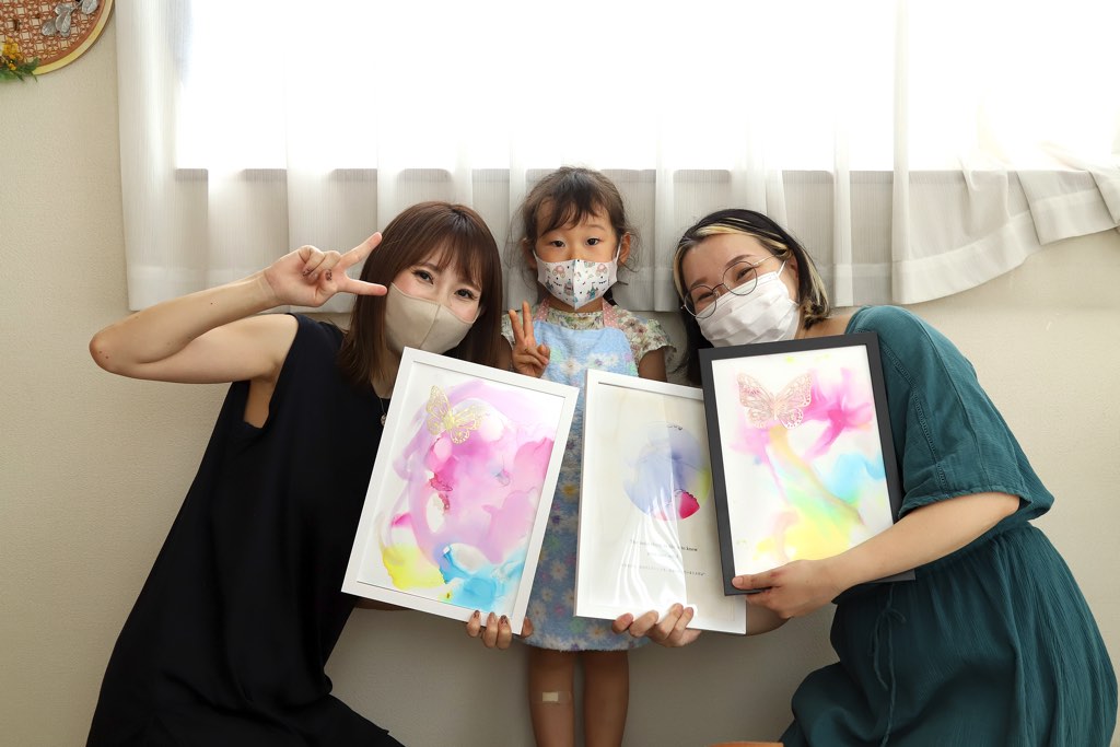 なっちゃん親子が、アルコールインクアート教室『ichie.art』の体験レッスンに参加。
