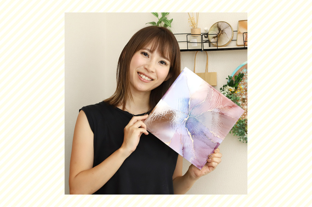 山梨県アルコールインクアート認定講師で、現在2歳のお子さんを持つママ。