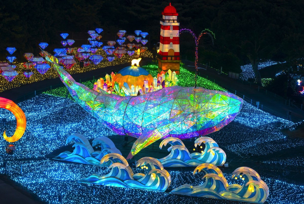 - 約15mの巨大なダイヤモンドのクジラや約7mの灯台など、ワクワクするランタンやイルミネーションがいっぱい!