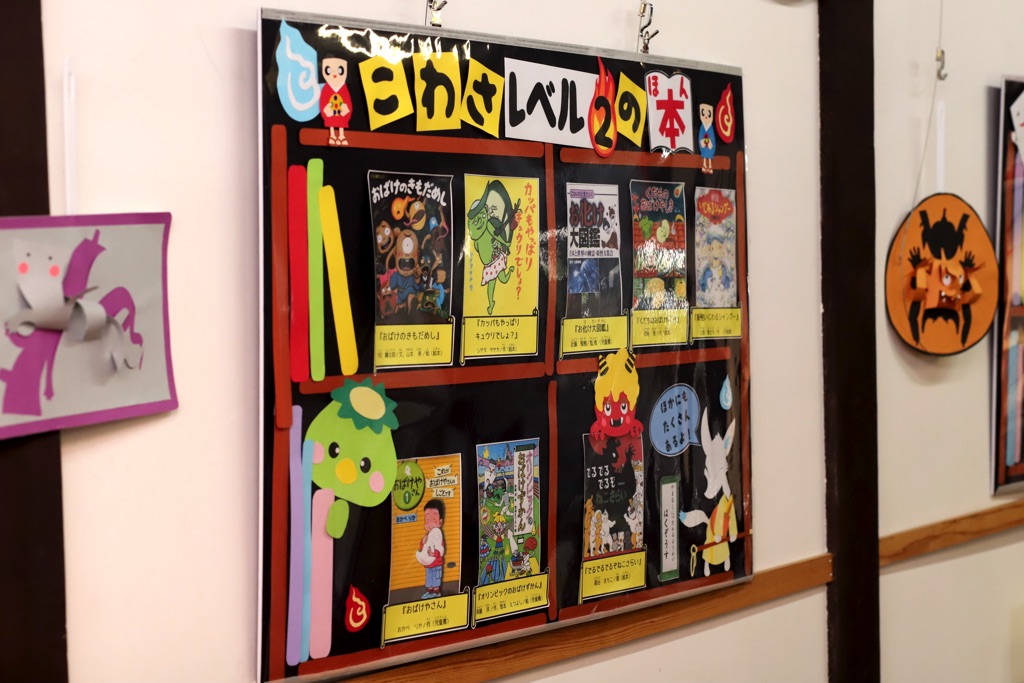 こわ~い絵本がいっぱい展示されている。