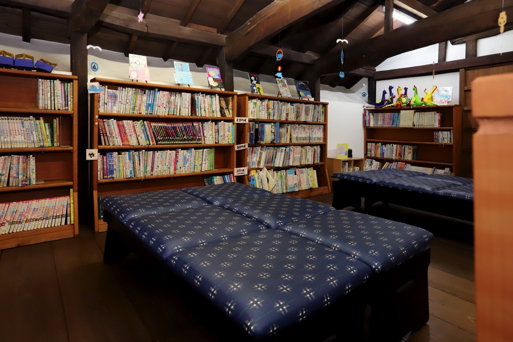 国の重要文化財でもある古民家を活用した、甘草屋敷子ども図書館。おばあちゃんちを訪れたような、ほんわか懐かしい空間で大好きな本に囲まれながら、和めるのがいい。