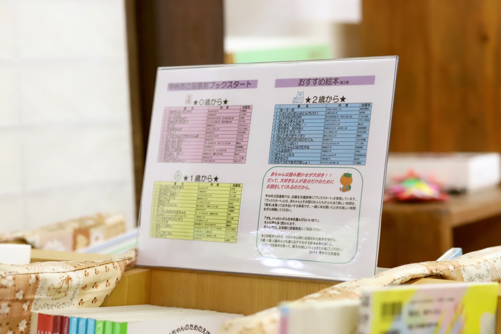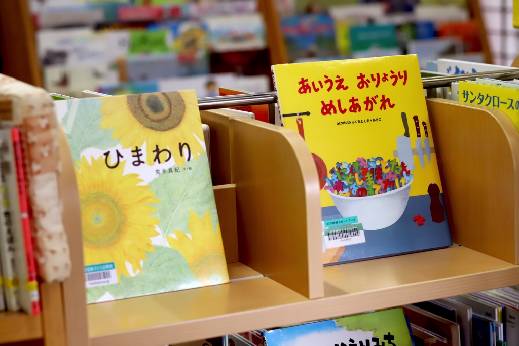 赤ちゃん向けの絵本を中心に、昔から愛されてきたベストセラーから新刊まで、約7,000冊を取り揃える。年齢別のおすすめの絵本も紹介されていて、ママも選びやすい。