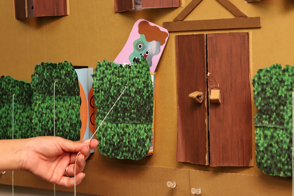「おばけのかくれんぼ~おばけを探せ」コーナーでは、手作りの仕掛けにワクワク♪いろんなおばけがあちこちに見え隠れする。