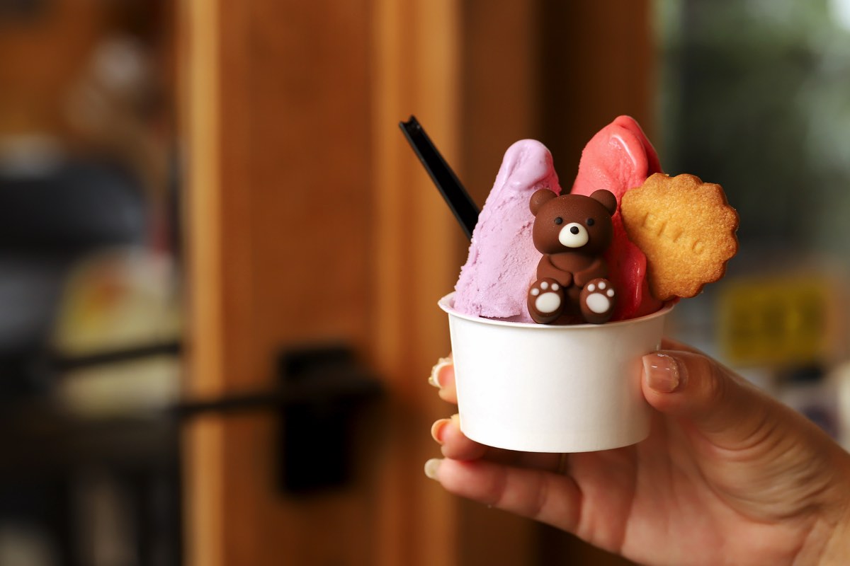 宮古島生まれのリッコジェラートが味わえることで、大人気のお店。トッピングで可愛いクマのマドレーヌを付けることも♪野菜や果物を使用したジェラートのカラフルな見た目に、子どもたちも夢中になること間違いなし!