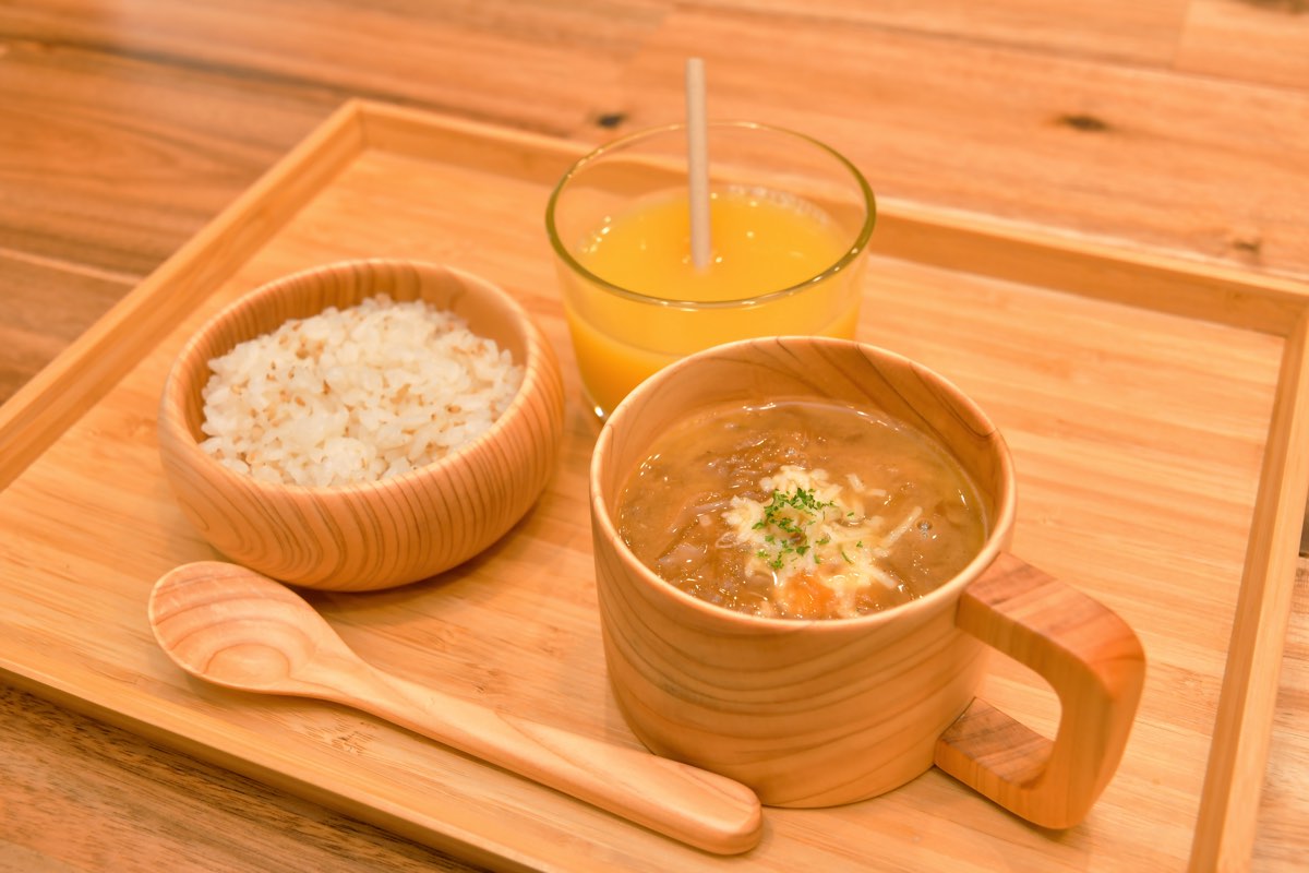 甲府市丸の内にあるMARLU SOUP(マールスープ)。店内はテーブル席、カウンター席のほか、大きなクッションが置かれたお座敷があり、小さい子どものいるママたちの憩いの場だ。「じぶんを大切にする」をテーマに、ゆるくまあるく、穏やかにじぶんをいたわ
