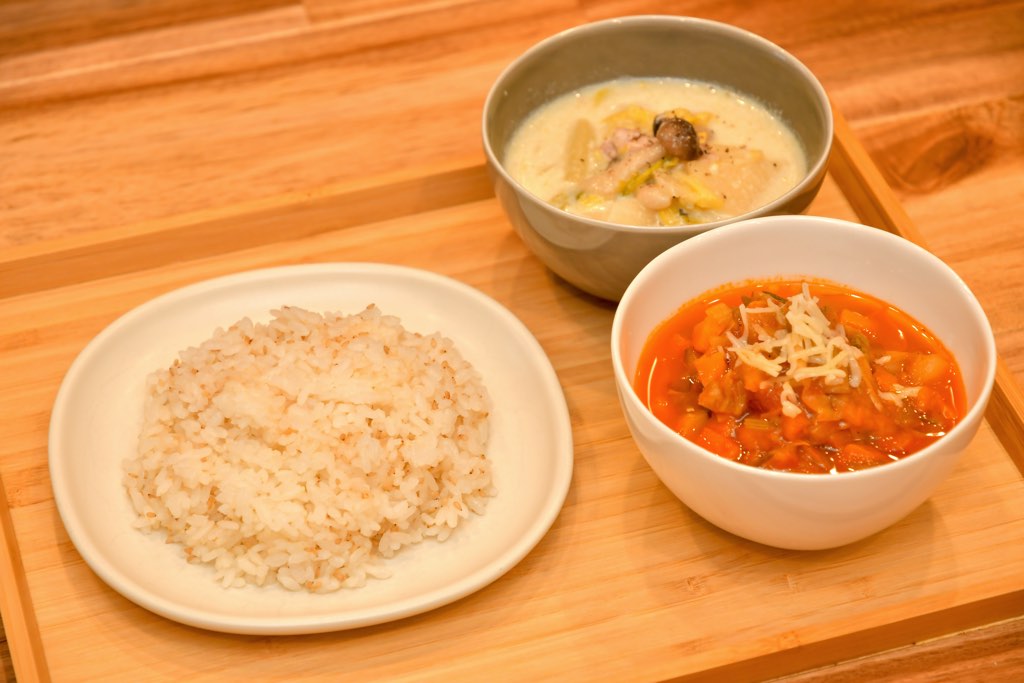 甲府市横根町の光と風マーケットコート内にある「醸し薬膳さんさんと」。安心安全な食材や天然の醸造調味料の使用、食材のもつ栄養を損なわないような調理法など、美と健康にこだわった料理が並ぶ。また、未就学児の子どもへのサービスや絵本、キッズチェアの貸し出しやおむつ替え台など、子連れママへの心遣いが人気の秘訣!
