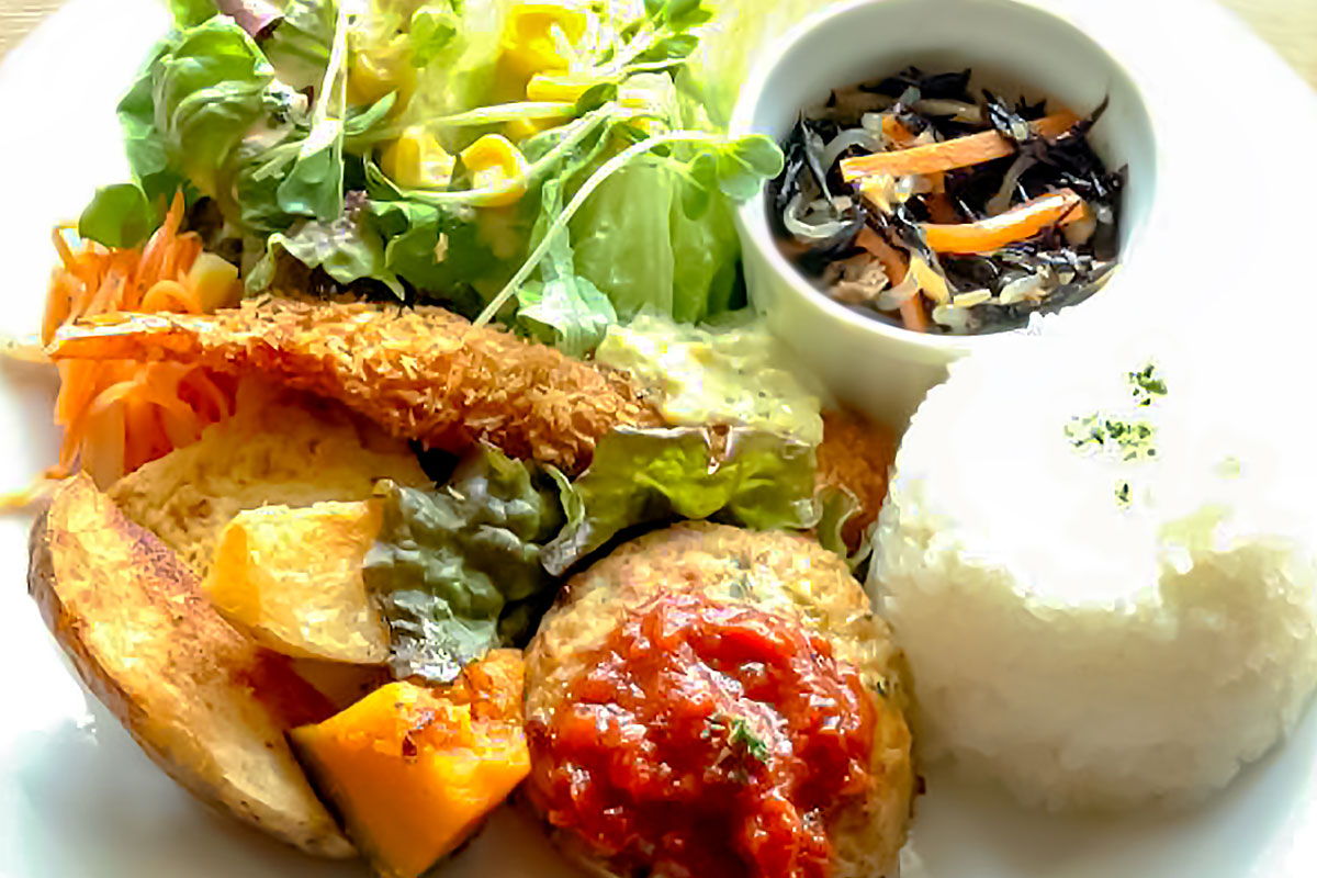 甲府市国母に佇む手作りのランチやお惣菜のお店。中でも、店主の愛情がこもったキッズメニューは、優しい味わいのカレーと日替わり具材の大きなおにぎりがラインナップ。お惣菜の販売もあるので、夕飯の1品にぜひ。