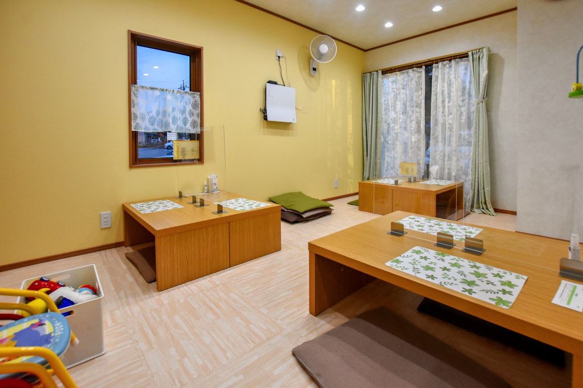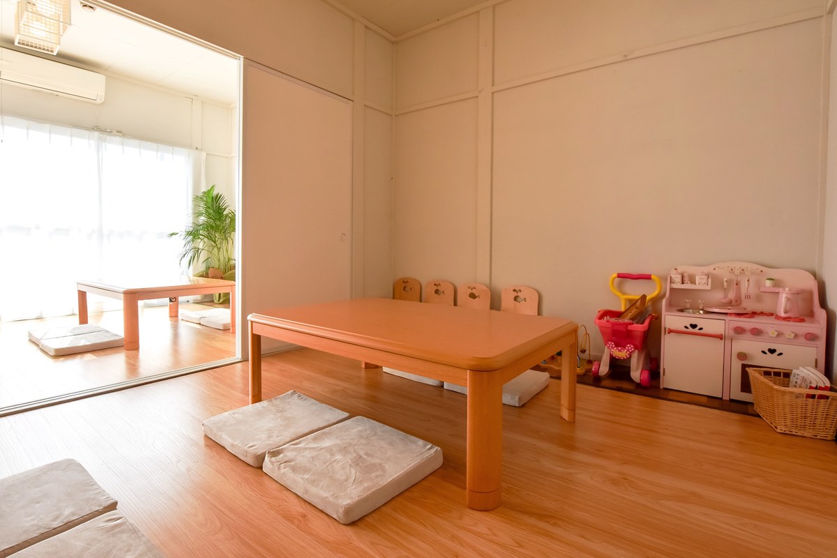 店名通り、ママと子どもたちの笑い声が絶えないお店「笑家」。全席お座敷で豊富なおもちゃや絵本などに加え、ベビーチェアやバウンザー、長座布団などが揃う。授乳室にはベビーベッドを配し、赤ちゃんのいるママにも優しい。