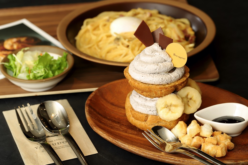シャトレーゼが展開するプレミアムブランド『YATSUDOKI(ヤツドキ)』のスイーツが並ぶショップをはじめ、カフェやレストラン、ガーデンテラスなどが集結した複合施設。ホテルラウンジのような店内はスペースが広く設計されているため、ベビーカーでも移動がとってもスムーズ!