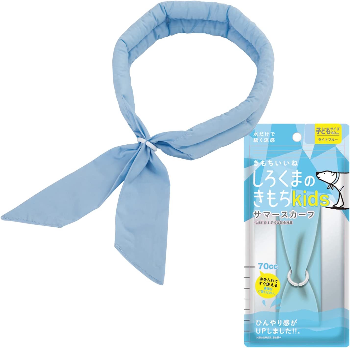 見た目もスカーフのようで日常使いにとけこみやすいデザインのひんやりグッズ。わずか70ccの水があれば約30秒で膨らみ、すぐに使用可能と、とっても便利なのも嬉しい。肌ざわりにこだわり、縫い目がなく、コットン100パーセントの上質な生地を採用しているので、小さい子どもにもオススメ。