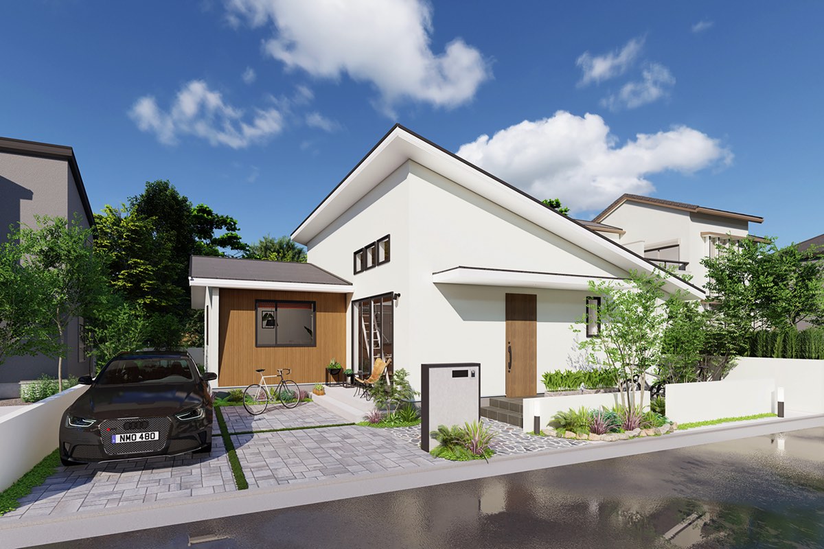 はじめは2階建ての家を考えていたものの、自分たちが望む生活スタイルや、将来年を重ねたときの快適さを追求していった結果、平屋という答えにたどりついたのだとか。