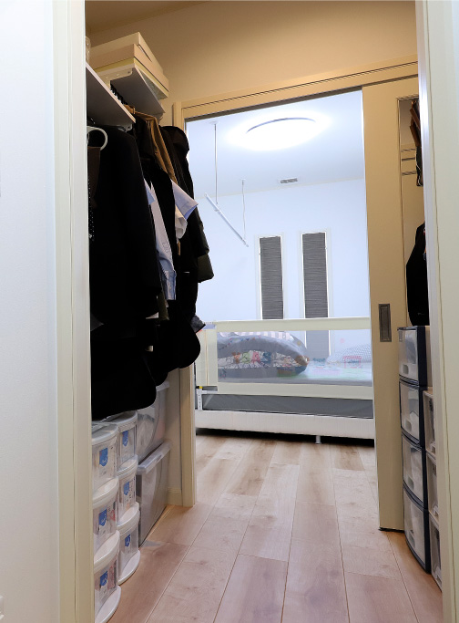 さらに、寝室と洗面所はウォークインクローゼットを介してつながっているので、ジメッとなりがちな水回りも風通し◎。
