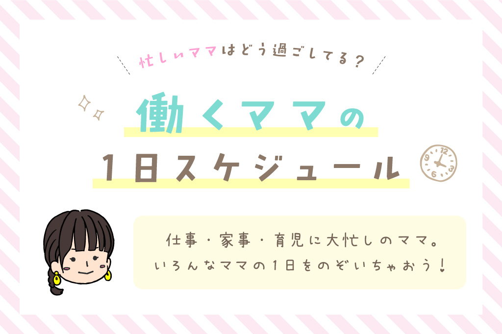 仕事に家事に育児…毎日大忙しのママたちは、一体どんな1日を過ごして、どんな工夫をしてるのかな?ママの数だけ色々な1日がある。みんな違ってみんないい。そんな、働くママの1日をのぞいちゃおう。