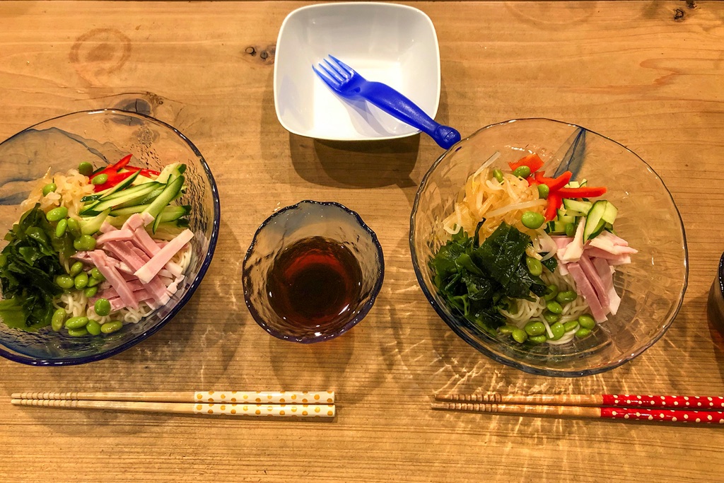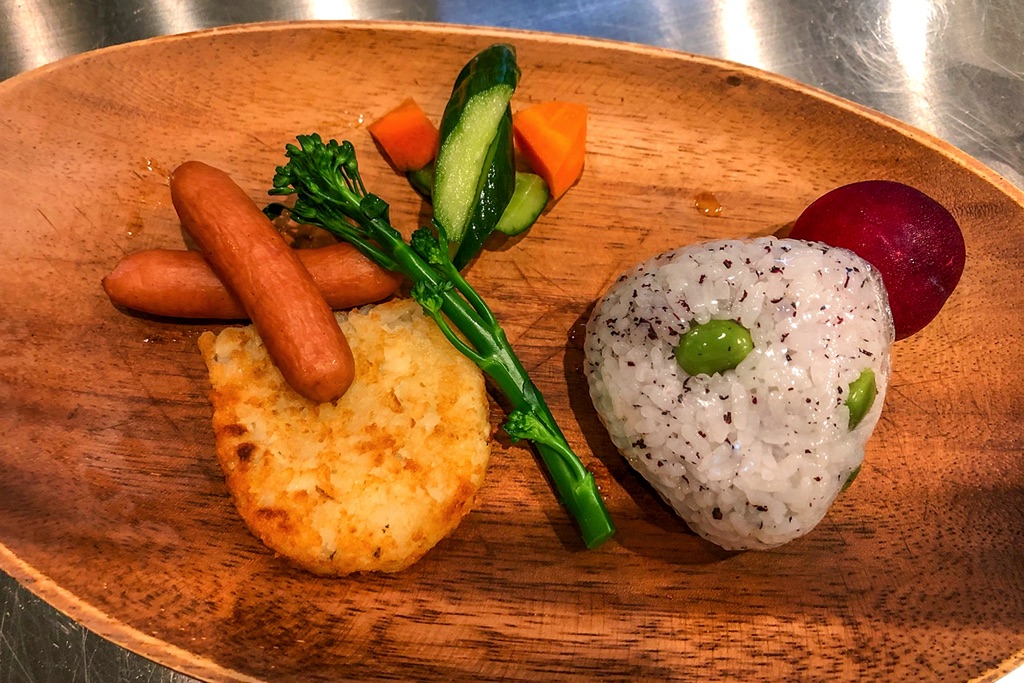 あとは自家菜園で育てた野菜やソーセージ、しらすなどを添えて。