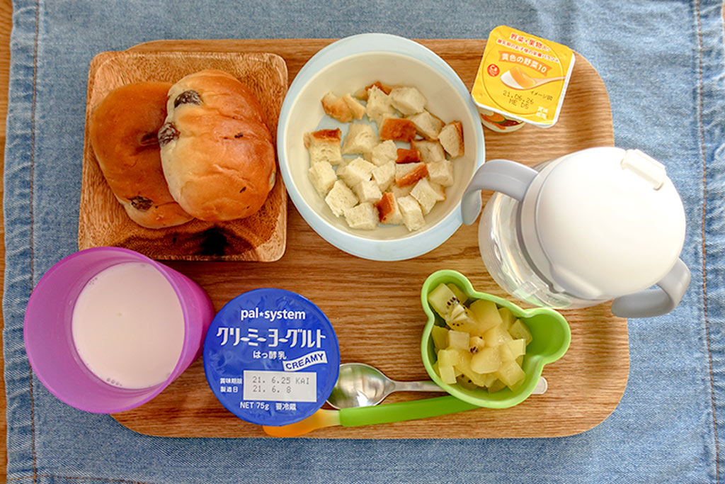 ママもこのタイミングにパンやヨーグルトで軽食をとる。