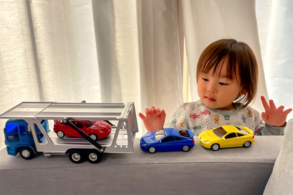 最近はキャリアカーのおもちゃに車を乗せて遊ぶのがお気に入り♪