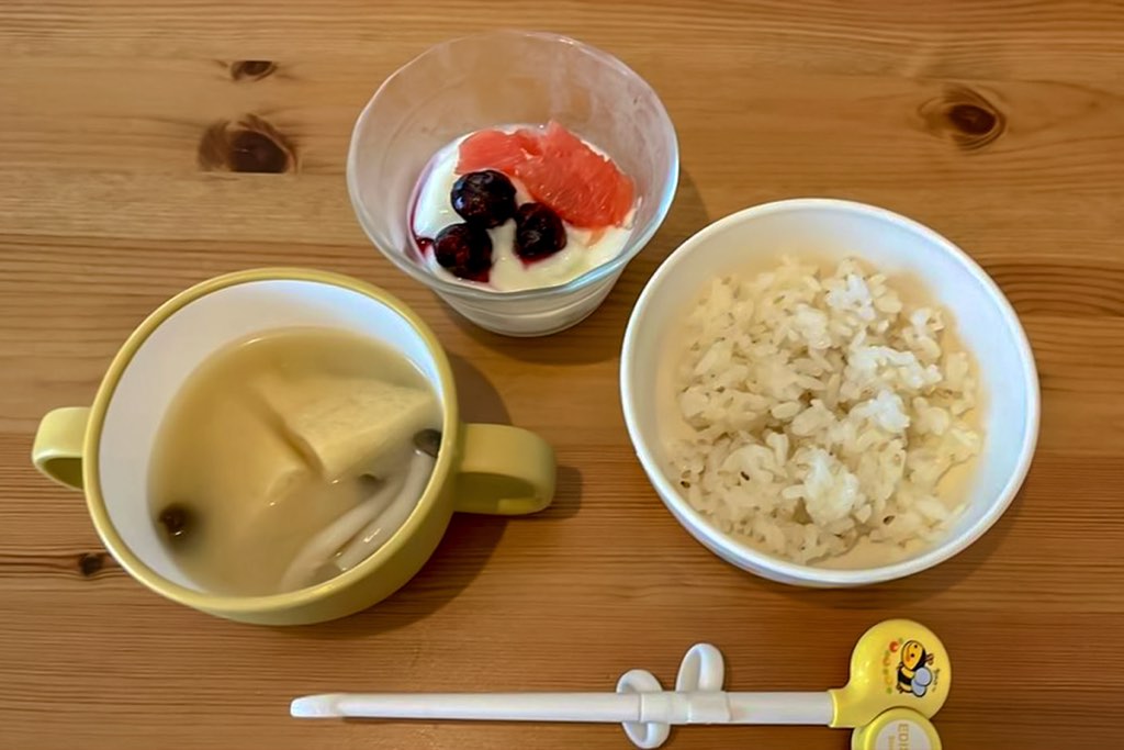 朝食準備は、パパがメインで担当。定番はごはんとお味噌汁。