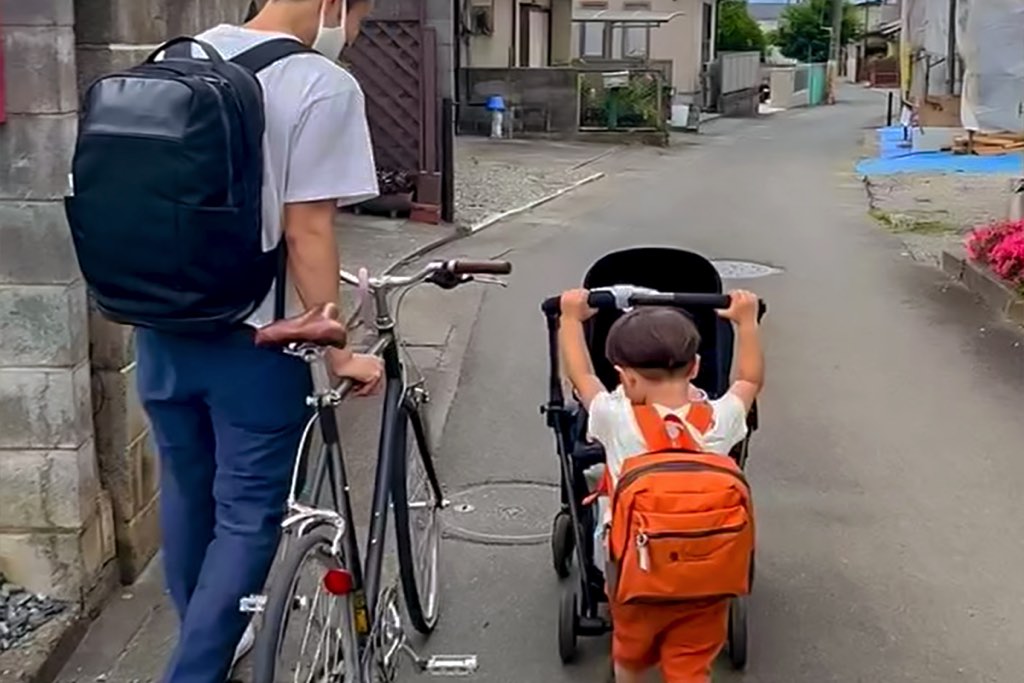 家の近くまで保育園バスがくるため、普段はパパが長男をバス停まで送り届ける。