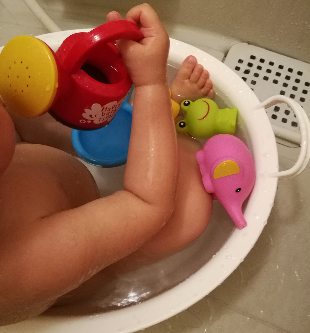 そのあとのベビーバスではお気に入りのおもちゃで遊んでご機嫌に。