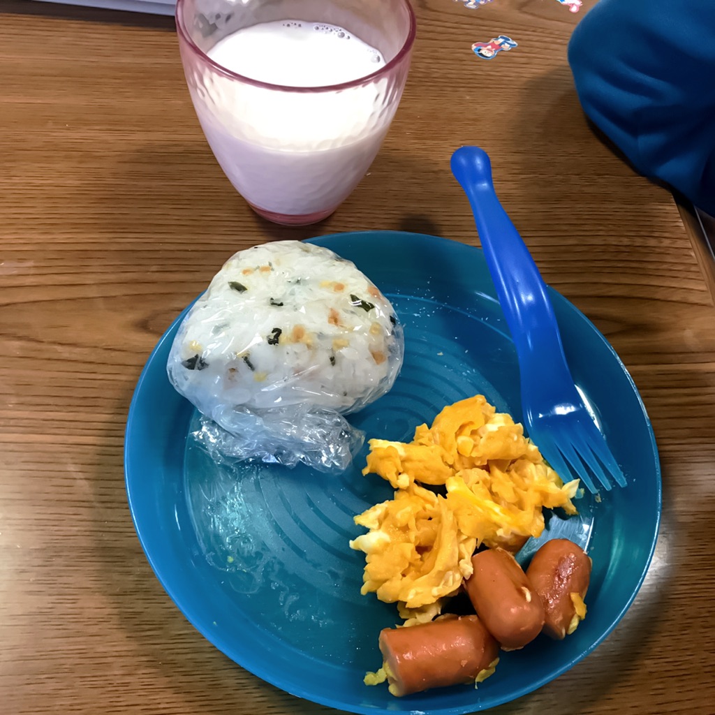 我が家の男子たちはみんな食が細めなので、朝食はいつもパンorおにぎり+牛乳が基本。あとは卵料理をそえることも。