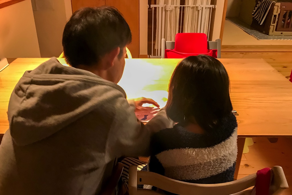 ゆっくりご飯を食べた後は、長女は宿題の残りをやったり遊んだりする時間。 その間はパパがお相手。