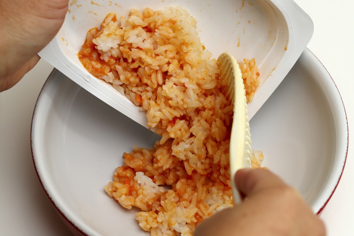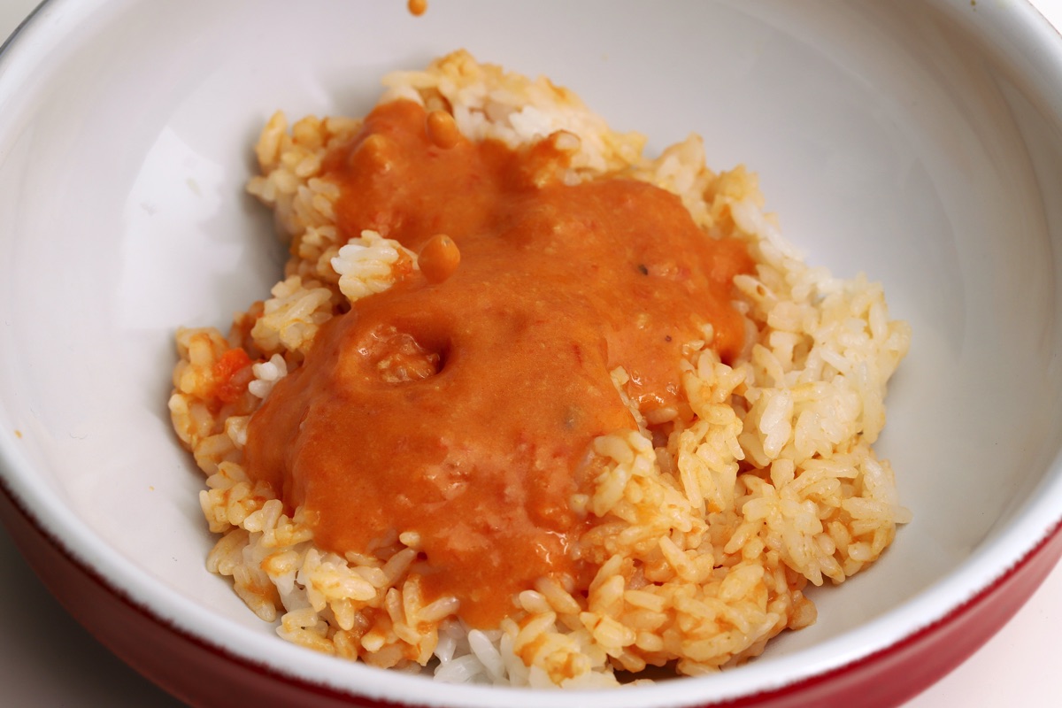 ごはんを温め、解凍したソースの半量と混ぜる。