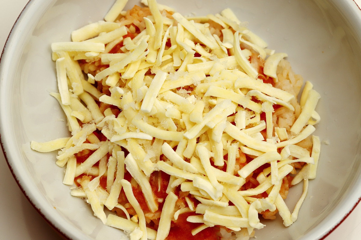 残ったソースがもったいないので、粉チーズとごはんを足してリゾットにしました。