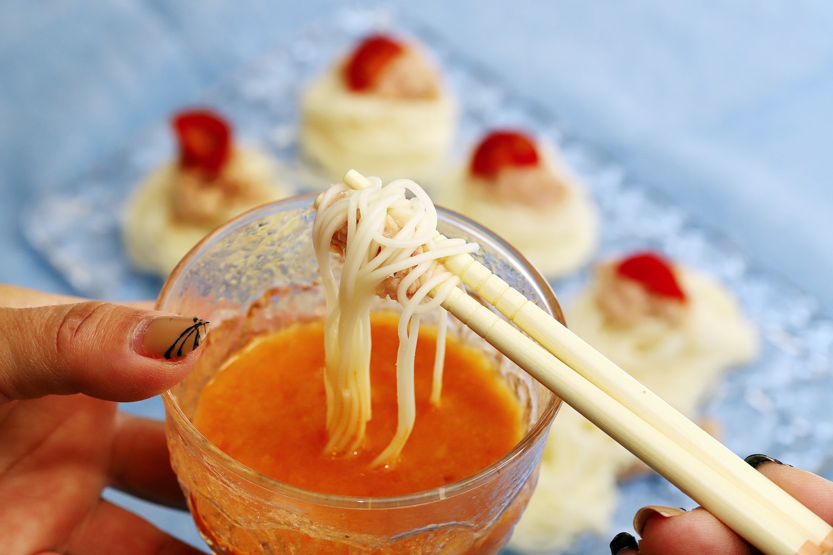解凍したソースを麺つゆがわりにアレンジするだけで、いつものそうめんが新鮮メニューに変身!