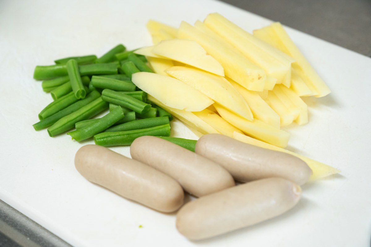 じゃがいもを拍子木切りにし、いんげんを3~4cmにカット。