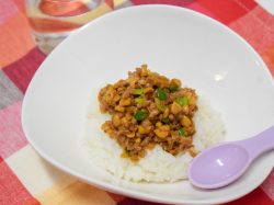 竜王西保育園の人気給食レシピー「肉味噌納豆」Vol.41
