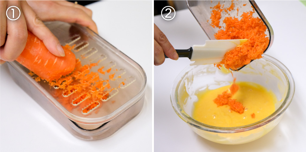 にんじんをすりおろし、すべての材料を混ぜあわせる。