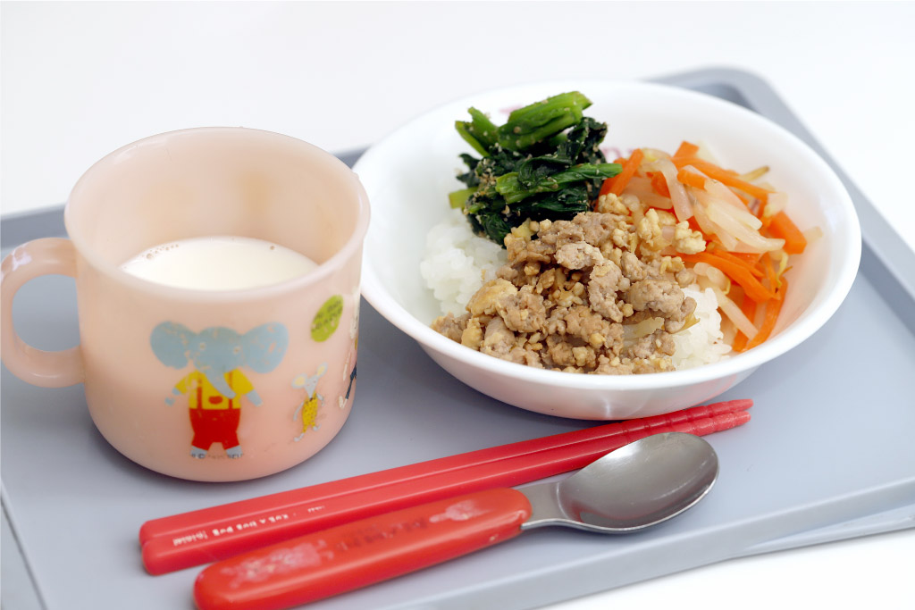 ※このコンテンツでご紹介するレシピは、保育園の献立の一部です。盛り付けや、材料、分量などは、家庭で作りやすいようにアレンジしているため、実際に保育園で提供されているメニューとは異なる場合がございます。