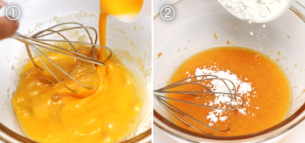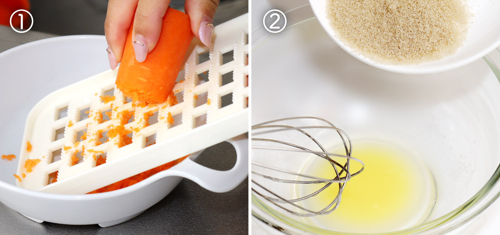 溶いた卵と牛乳、すりおろしたにんじんを加え混ぜる。