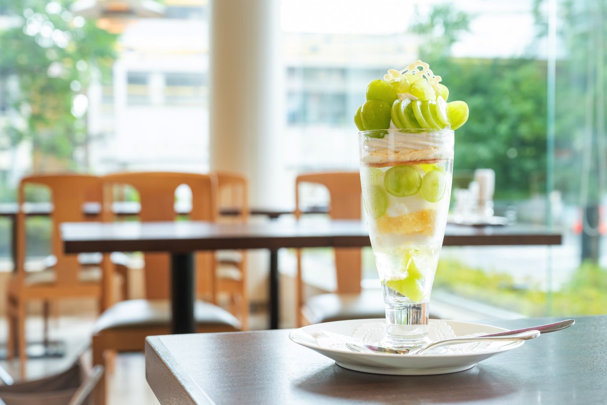 旬の県産フルーツで彩られる葡萄屋kofuの“季節のフルーツパフェ”も、いよいよシャインマスカットの出番!