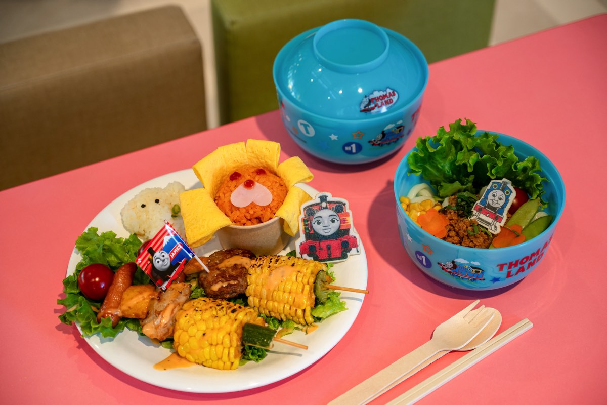 「トーマスレストラン」では、2023年7月15日から8月27日まで、スーベニア丼が持ち帰れる「トーマスの冷やしごまサラダうどん」(1,650円)や、ボリューム満点の「ニアのジャングルBBQプレート」(1,300円)など、暑い夏にピッタリの限定メニューが楽しめる。